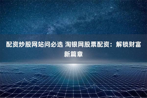 配资炒股网站问必选 淘银网股票配资:解锁财富新篇章
